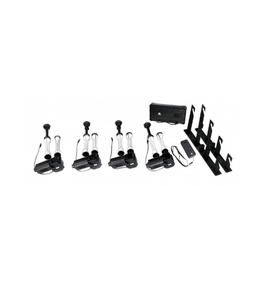 Juego de 4 mecanismos de expansión motorizados para fondos de papel, con soporte de pared, caja de control y mando a distancia.