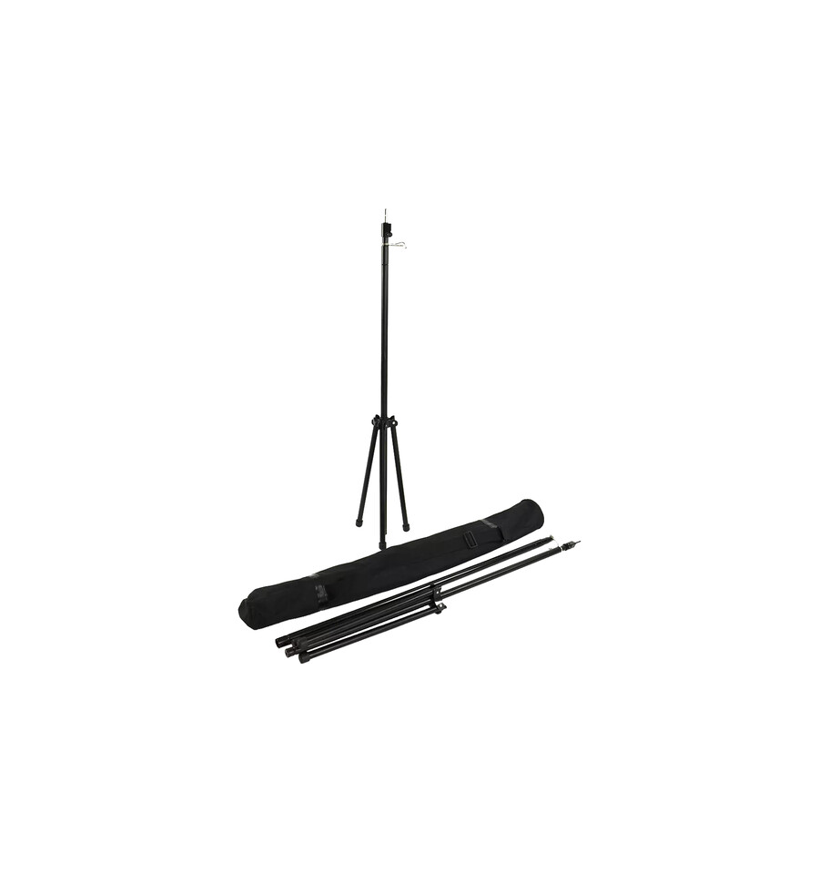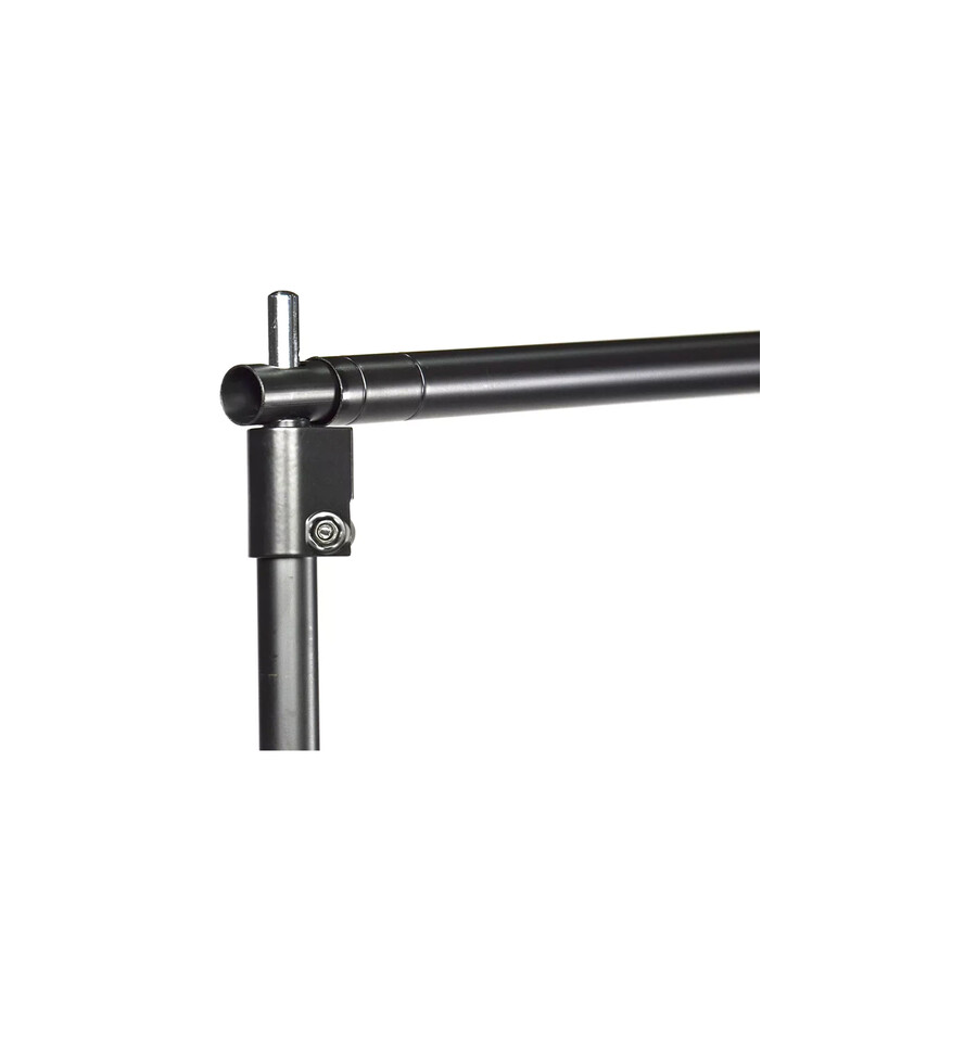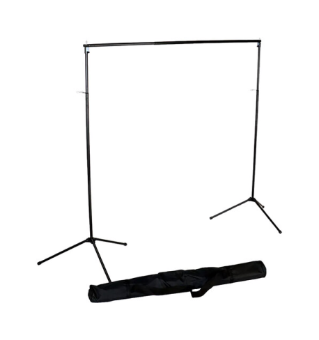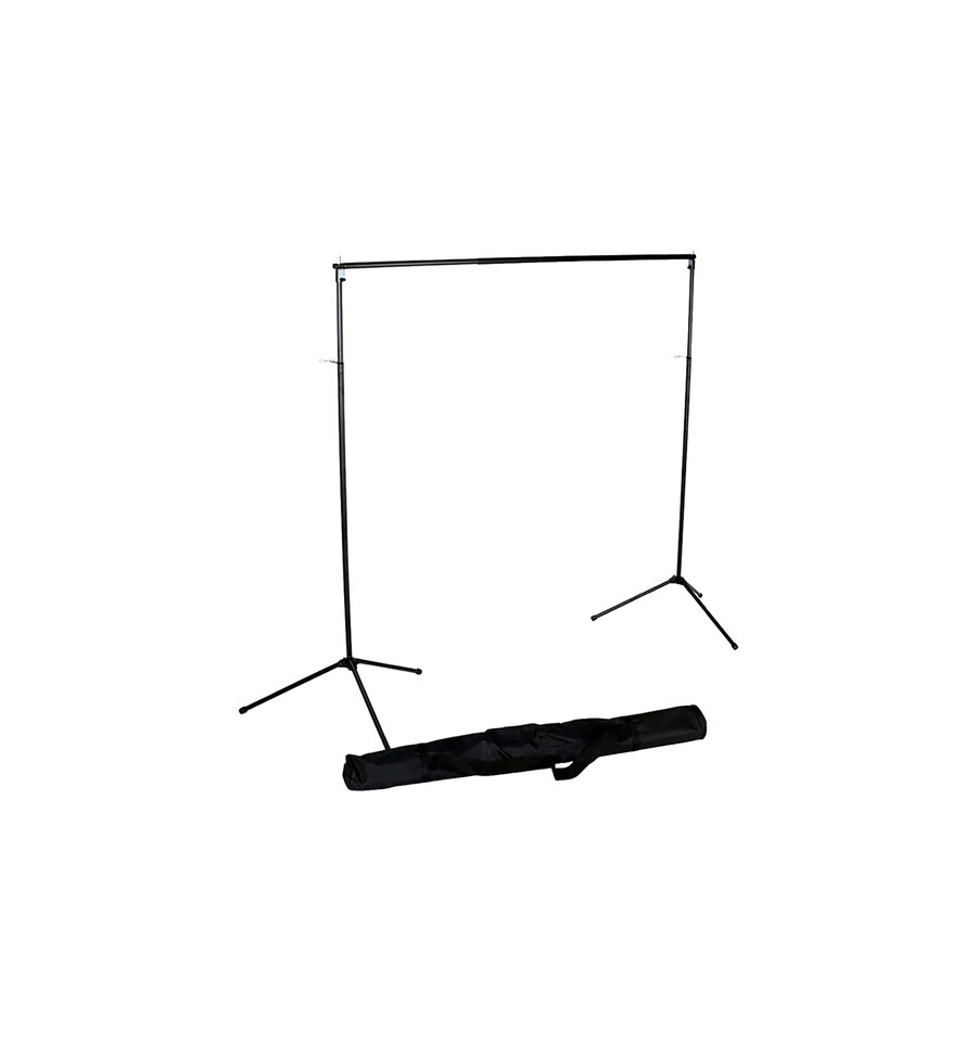 Cuenta con dos trípodes de altura regulable que finalizan en un acople de espiga de 16mm. La barra horizontal puede regular la longitud, adaptándose a las medidas del fondo a usar. El soporte es fácil de montar y transportar, incluye bolsa de transporte.
