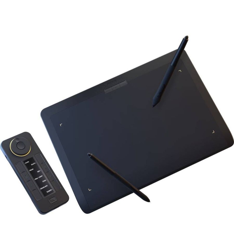 Con este Kit, Xencelabs Kit Tablet M Negra, deja fluir tu creatividad con la tableta gráfica Xencelabs de tamaño mediano (A5), que cuenta con un área activa de 10,33 x 5,8" que se corresponde con monitores de relación de aspecto de 16:9 para proporcionar una experiencia de dibujo natural, precisa y receptiva. Se incluyen dos bolígrafos de resonancia electromagnética (EMR) con la tableta digital: un bolígrafo de barril más ancho con tres botones programables junto con un bolígrafo delgado de barril más pequeño con dos botones que se maneja de manera similar a un bolígrafo o lápiz estándar. Ambos incluyen 8192 niveles de presión con una inclinación de ±60° que proporciona líneas gruesas o ligeras de alta precisión a medida que dibuja. También tienen borradores digitales incorporados y no requieren baterías ni carga. Los tres botones en la parte superior de la tableta permiten un acceso rápido a la configuración de la pantalla de la tableta, el lápiz y el interruptor. Un reposamanos suavemente curvado y luces LED ajustables a lo largo del área de dibujo hacen que el uso de la tableta sea lo más cómodo posible.