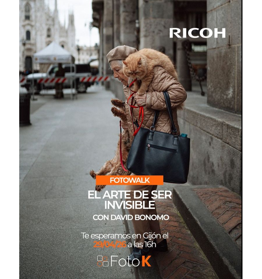 A lo largo del recorrido, David mostrará su manera de trabajar con un equipo ligero y discreto, pensado para pasar desapercibido y reaccionar con rapidez ante lo inesperado. En el centro de esta experiencia estará la Ricoh GR IV, una cámara que no solo representa la evolución de la serie GR, sino que se ha consolidado como una auténtica referencia absoluta dentro de la fotografía urbana a nivel mundial.