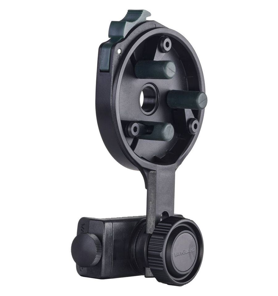 Con el adaptador universal de móvil para prismáticos VEO PA-62 podrás hacer digiscoping y tomar fotos o vídeos con casi cualquier smartphone de hasta 9 cm de ancho. Fácilmente ajustable al objetivo de la cámara de tu teléfono móvil, cuenta además con un mando bluetooth para asegurar la nitidez de tus capturas.