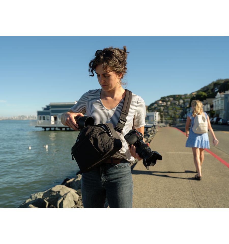 Diseñada con las aportaciones de fotoperiodistas profesionales, la serie Think Tank PressPass ofrece varias opciones de transporte, como bolsa cruzada, bandolera, riñonera y bandolera. El Think Tank PressPass 10 se lleva idealmente como bolso cruzado, pero también puede llevarse en cualquier configuración. Su amplia abertura permite un acceso rápido y sencillo a todo su equipo, tanto si la utiliza como bolsa para la cámara como si solo quiere cambiar el objetivo. Además, la inserción acolchada es extraíble para aumentar el espacio interior y crear una bolsa más suave y flexible.