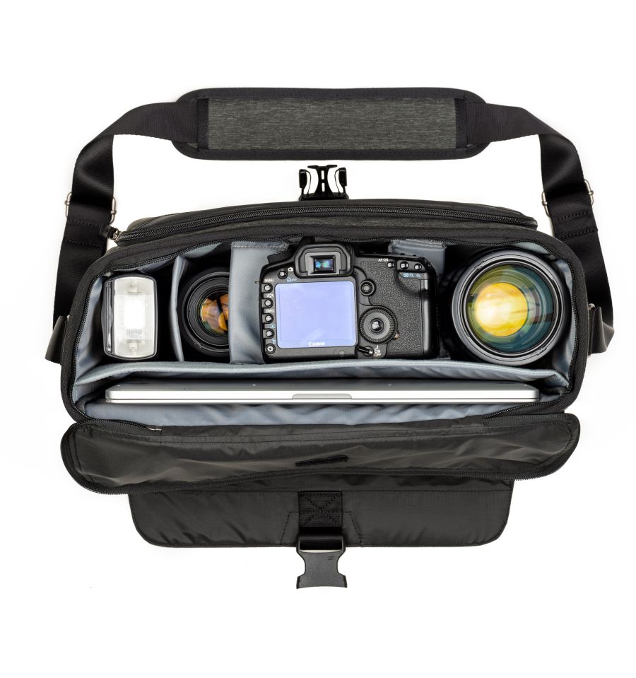 Las bandoleras Vision combinan forma y funcionalidad. La gran fotografía comienza con una visión. En la Vision 15 cabe una cámara DSLR estándar con 2,8/24-70 mm acoplado, 2,8/70-200 mm (sin acoplar), de dos a cuatro objetivos adicionales, una unidad de flash, un ordenador portátil de hasta 15" y una tableta de 10".