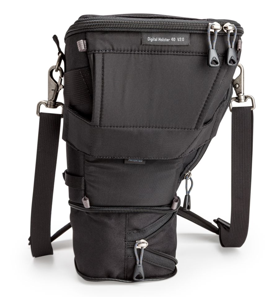 La Digital Holster™ 40 V2.0 está diseñada para cámaras Pro DSLR del tamaño de, por ejemplo, una Canon EOS 1D Mark IV con 2,8/24-70 mm L acoplado o una Nikon D4 con 2,8/24-70 mm o cámaras de tamaño comparable.