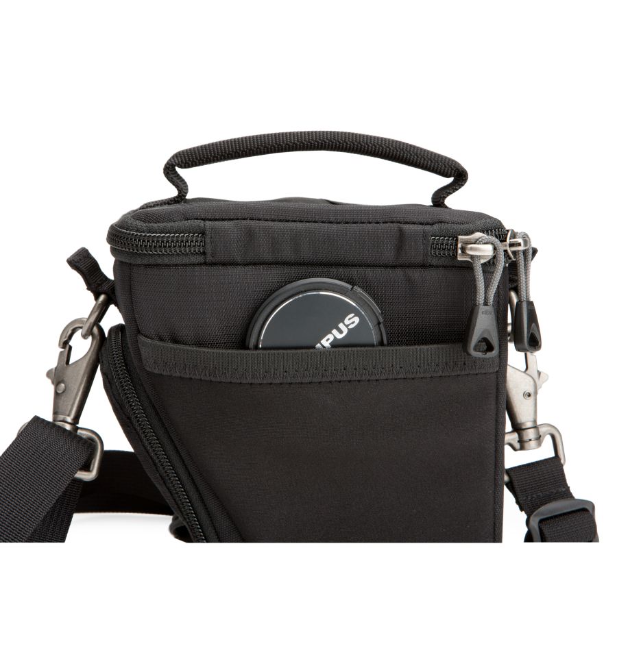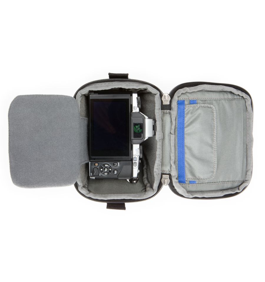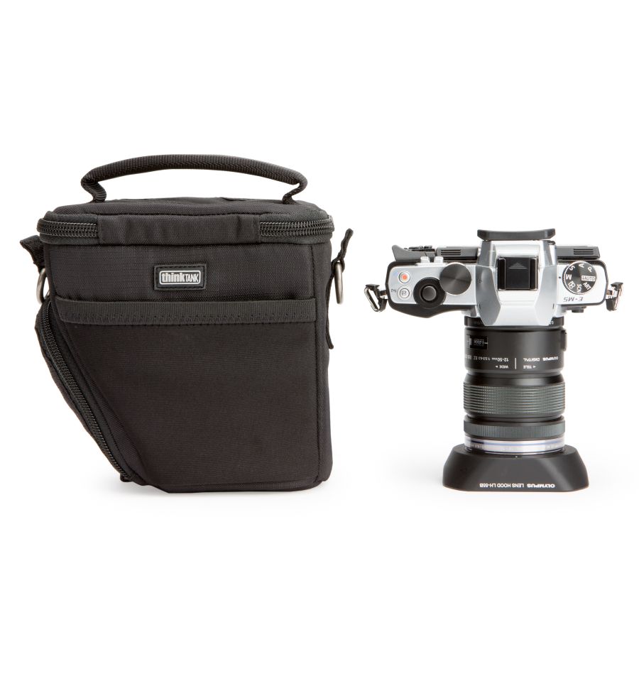 Especialmente desarrollada para cámaras de sistema digital sin espejo con objetivos intercambiables, la Digital Holster™ 5 puede utilizarse con la correa para el hombro suministrada o llevarse en el cinturón. La tapa se abre separándose del cuerpo para acceder rápidamente a la cámara. Una bolsa pequeña, versátil y ligera, ideal para viajes fotográficos sin preocupaciones. La Digital Holster™ 5 está diseñada para cámaras del tamaño de, por ejemplo, una Olympus E-PL5, OMD E-M5 con objetivo kit 12-50 mm, Fuji X-E2 con objetivo kit 18-55 mm, Sony a6000 con objetivo 16-50 mm, Nikon J3, Panasonic GX8 con objetivo 14-140 mm o cámaras pequeñas comparables con objetivo acoplado de hasta 8,4 cm de longitud.