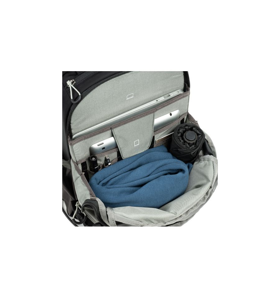 La BackLight 18L Slate Black es una mochila que permite acceder al equipo fotográfico sin quitártela, girándola hacia el frente mientras el cinturón está asegurado. Tiene capacidad para llevar 2 cuerpos de cámara y hasta 3 objetivos en conjunto. Con compartimentos para portátil de 13" y una tableta de 10".