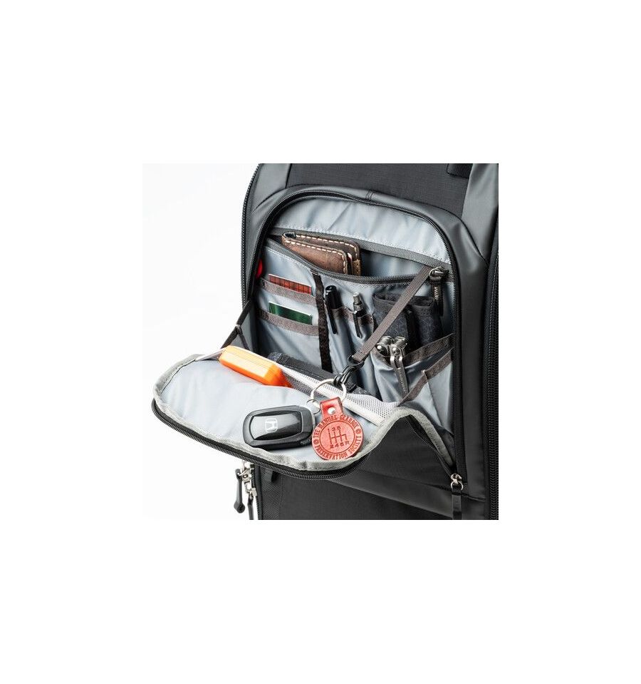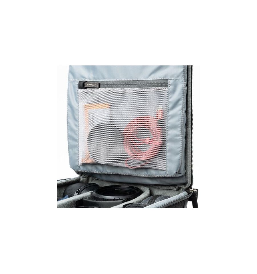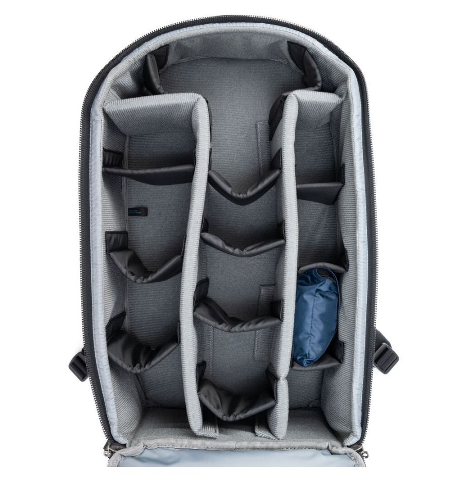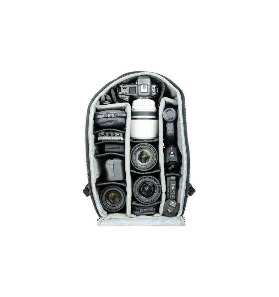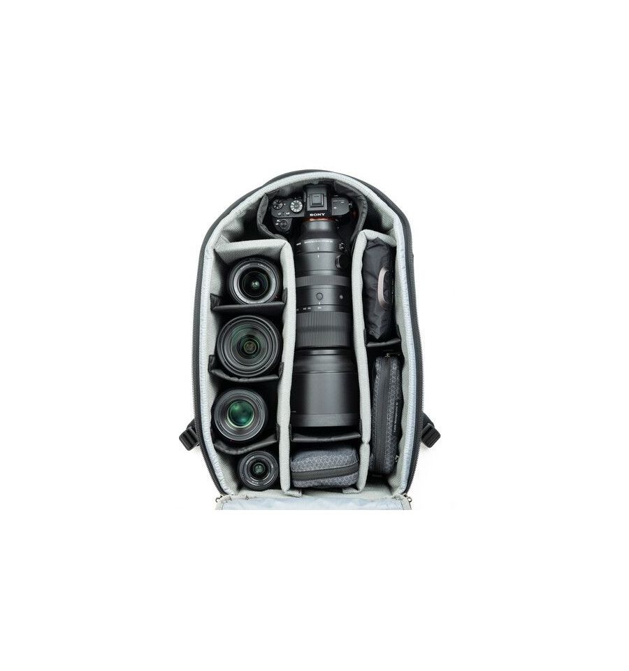 • Compartimento fotográfico profundo para cuerpos agarrados y almacenamiento vertical de lentes largos