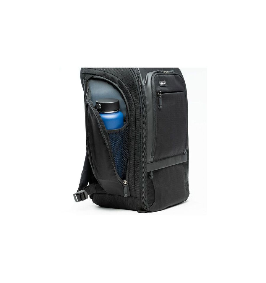 • Los bolsillos laterales plisados se expanden mientras están cerrados o se abren para guardar botellas de agua altas o trípodes pequeños y medianos