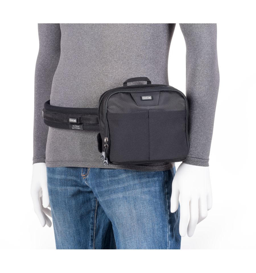 Con el sistema patentado "girar o bloquear" de thinkTANK photo, los componentes pueden fijarse en su posición o moverse por todo el cinturón. La fijación flexible permite al fotógrafo más libertad de movimiento arrodillado, sentado o caminando.