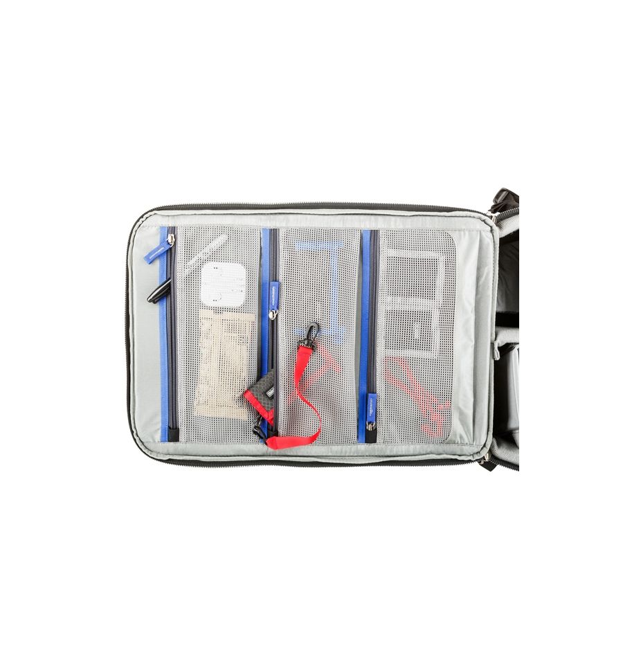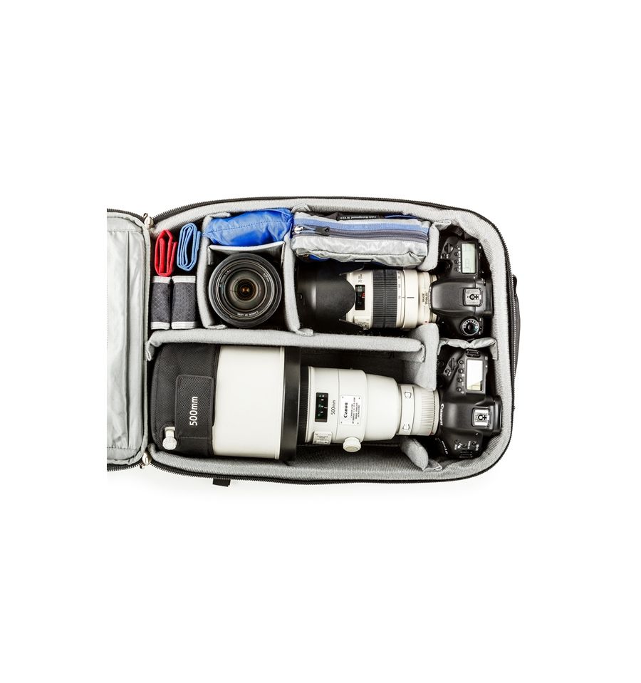 - El Airport Accelerator™ está diseñado para dos cámaras DSLR profesionales, de seis a ocho objetivos zoom estándar de hasta 2,8/70-200 mm o un objetivo de 4,0/500 mm, un portátil de hasta 17" y un iPad o dispositivos comparables de 11".