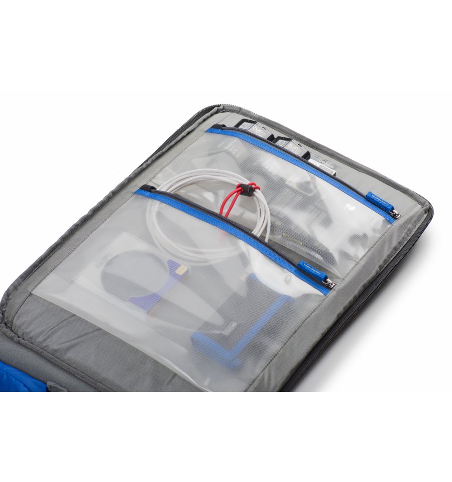 "El Airport TakeOff V2.0 incorpora un nuevo asa de carro diseñada a medida con ranuras guía para una mayor estabilidad y durabilidad, lo que facilita el movimiento del carro en terrenos irregulares", afirma Doug Murdoch, presidente y diseñador jefe de thinkTANK photo. "Las nuevas características también incluyen un compartimento dedicado para una tableta en el compartimento delantero, así como un bolsillo para smartphone en la tapa del compartimento delantero".