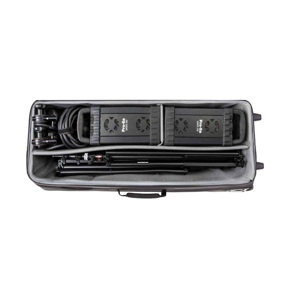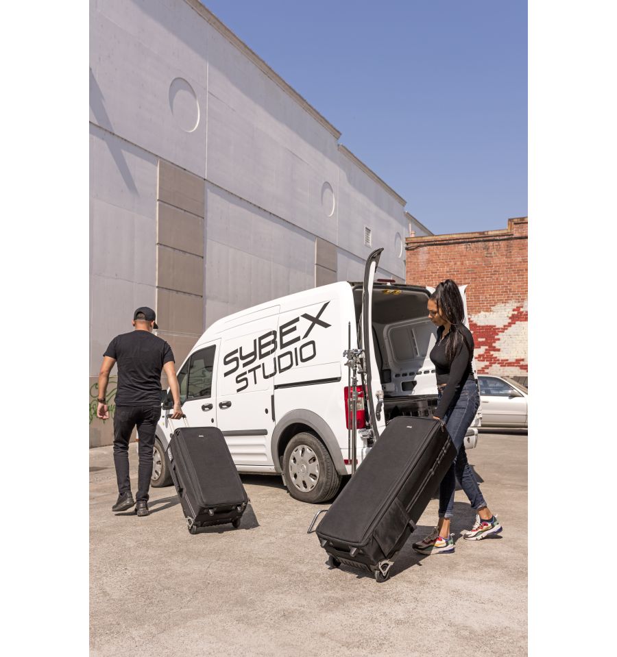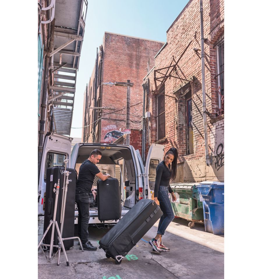 Transporte todo su estudio en una sola maleta que ofrece el mayor nivel de protección con el menor peso. Ruedas estabilizadoras, anchas y amortiguadoras que ruedan suavemente para soportar las condiciones más duras