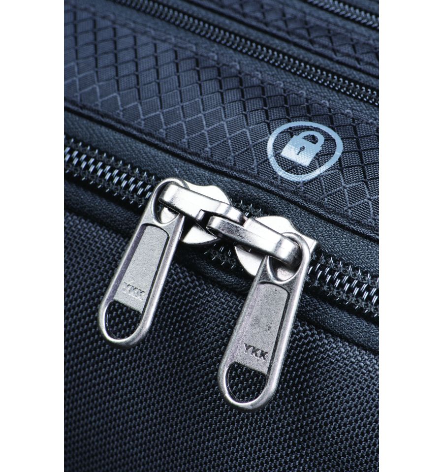 - Bloquee el compartimento principal y asegúrelo en su sitio.Bloquee el compartimento principal y asegure la bolsa con el candado y el cable incluidos