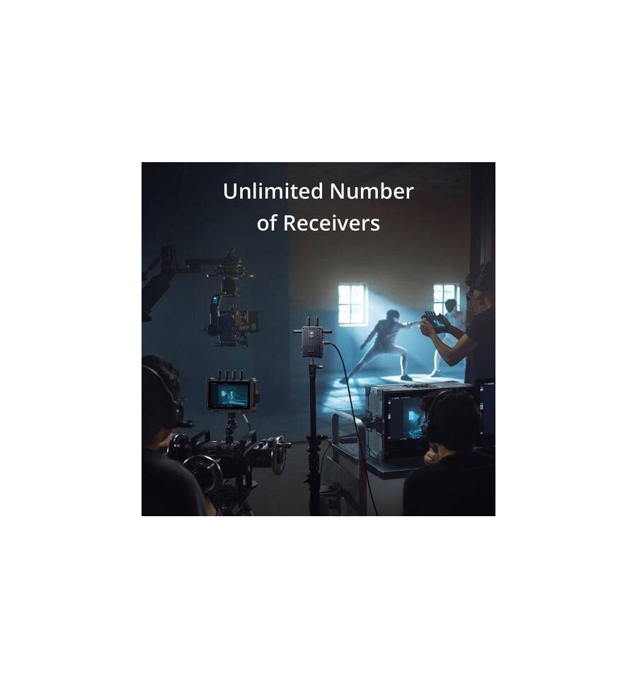- En versiones más grandes y dinámicas, DJI Transmission puede operar con 20 o más transmisores enviando señales a 20 o más dispositivos, lo que resulta en una experiencia fluida y coordinada que es difícil de lograr con las configuraciones de transmisión tradicionales.