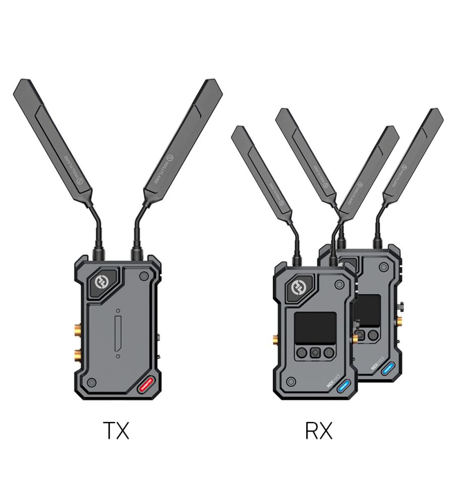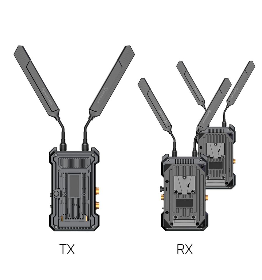 Una característica destacada es su configuración 2TX (transmisor) y 1RX (receptor), que soluciona problemas típicos de las configuraciones tradicionales 1TX y 1RX, como el cableado excesivo, las limitaciones espaciales y los retrasos en la sincronización entre las señales de las cámaras. Con Cosmo C2, dos transmisores pueden enviar señales de imagen a un solo receptor, lo que reduce la configuración del equipo y garantiza una mayor sincronización entre las señales de las cámaras.