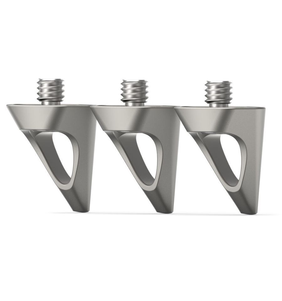 Fabricado en resistente acero inoxidable 420, este juego de pies con punta (Spike Feet Set) de Peak Design proporciona a un trípode Pro o Pro Tall el agarre necesario para disparar en terrenos blandos, hielo resbaladizo, otras superficies exteriores difíciles e incluso en condiciones de viento. Estos pies son ideales para tomas en exteriores y se instalan fácilmente en la parte inferior de cada pata del trípode utilizando una llave hexagonal de 4mm.