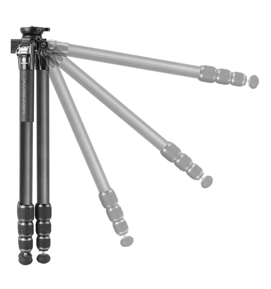 El trípode de fibra de carbono Alta Pro 3VL 264CT sustituye la columna central por una semiesfera de -15°/+15°, que ofrece mayor estabilidad y rapidez en la nivelación para grabar vídeos estables, usar con teleobjetivos o telescopios terrestres.