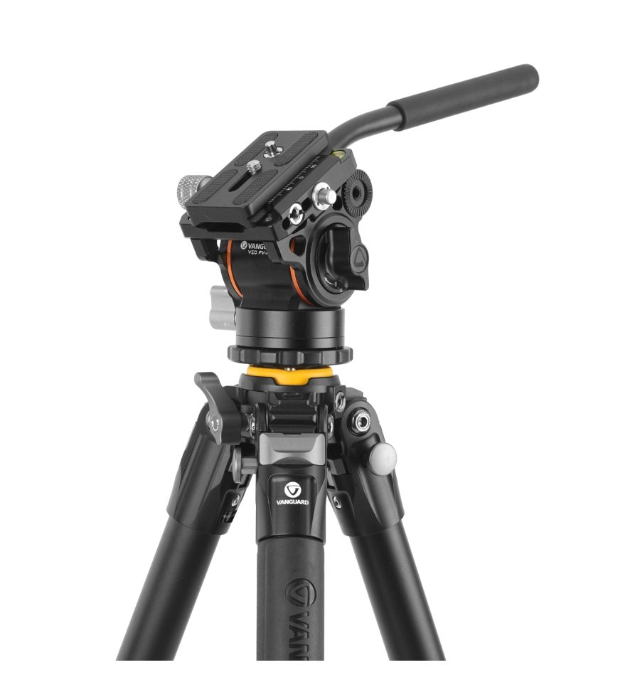 Este kit incorpora la rótula de vídeo Veo PV-14 de puente cerrado, que garantiza movimientos panorámicos y verticales extremadamente fluidos. Es compatible con zapatas tipo Arca y cuenta con un mando ajustable para un control ergonómico. Además, su base de columna dispone de un tornillo convertible de 3/8” a 1/4”, permitiendo el intercambio de cabezales según la necesidad del momento.