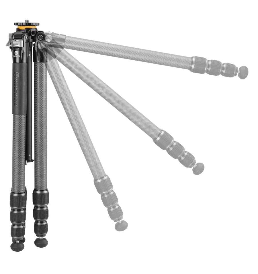 Una de las innovaciones clave de este modelo es su columna central hexagonal divisible. Este diseño permite reducir el diámetro exterior del trípode cuando está plegado, facilitando su transporte. Además, permite ajustar la altura rápidamente o alcanzar ángulos extremadamente bajos (hasta 12,5 cm) simplemente desenroscando la parte inferior de la columna, sin necesidad de desmontar la rótula.