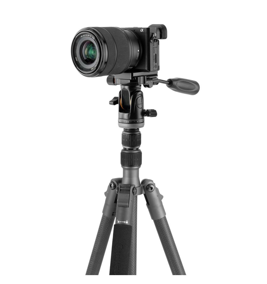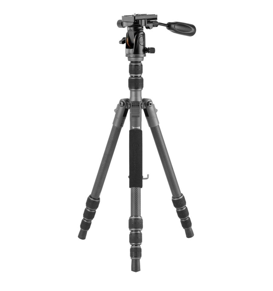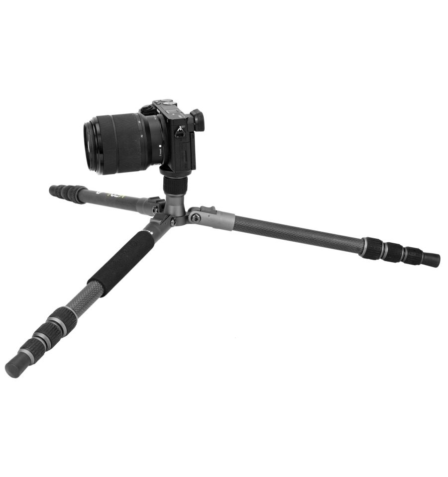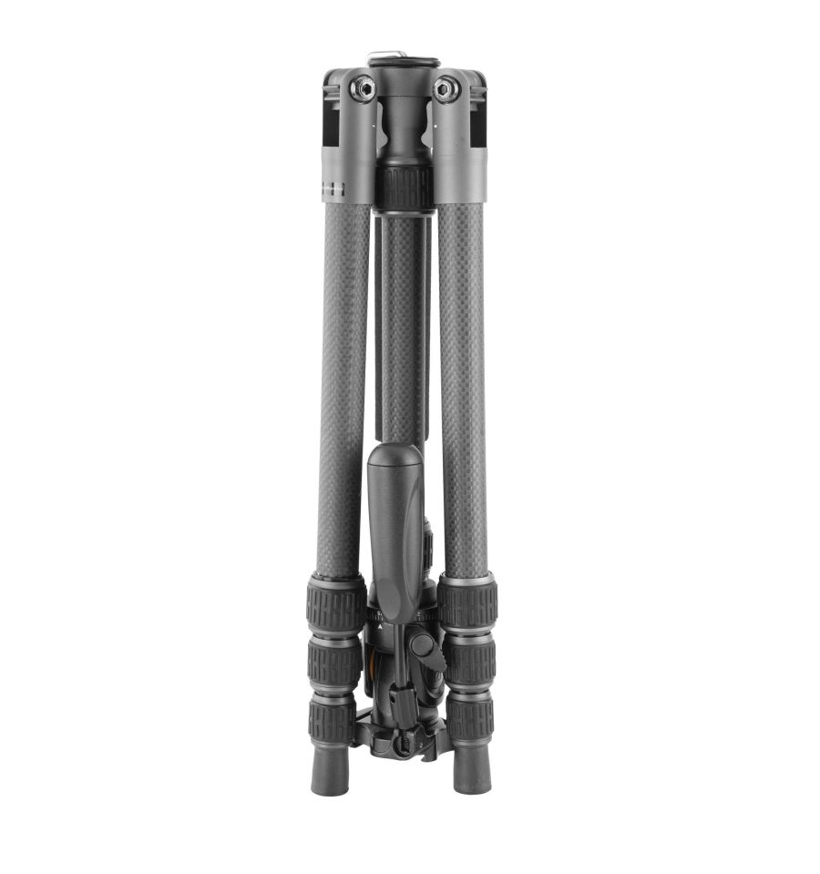 Las patas del trípode de fibra de carbono Veo 3GO 204CP cuentan con 4 secciones de 20mm de diámetro, lo que lo hace ultra ligero: se pliega hasta los 34,5 cm y pesa menos de 1kg.