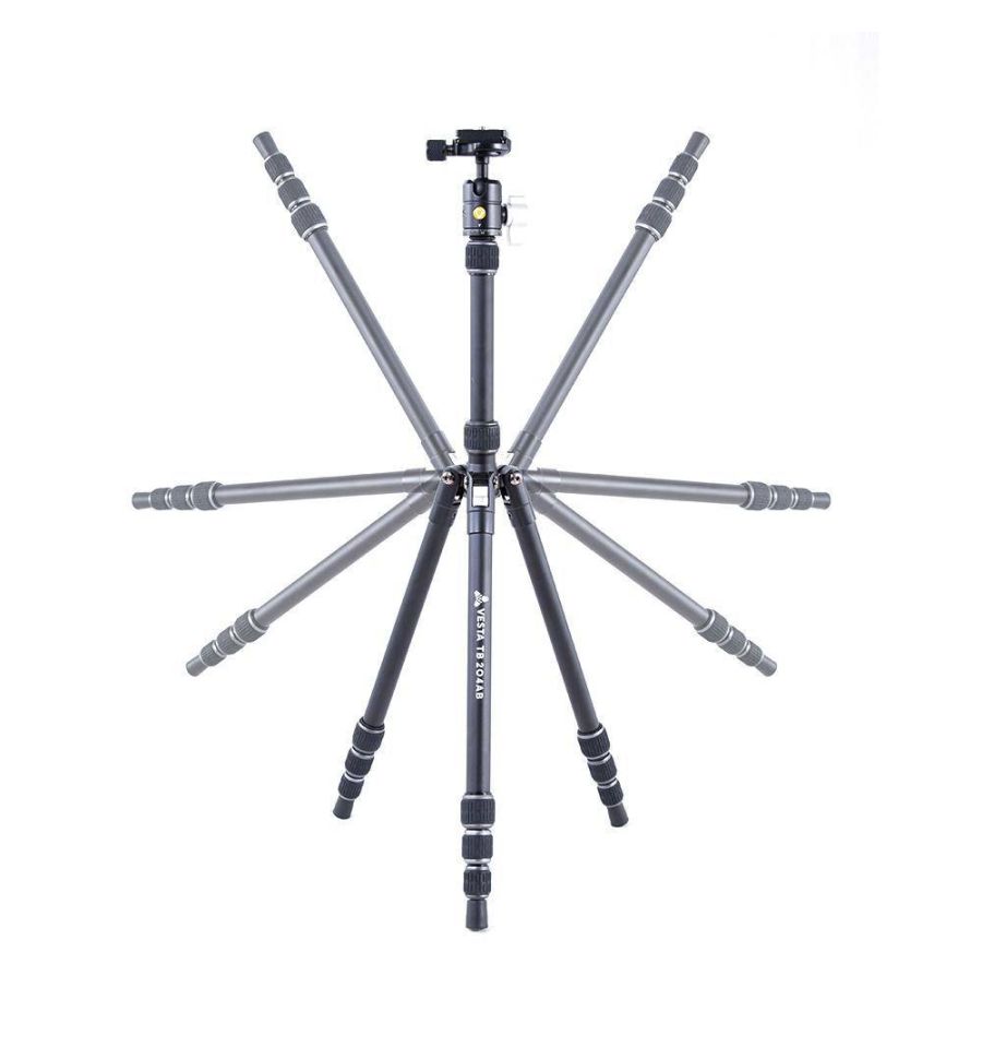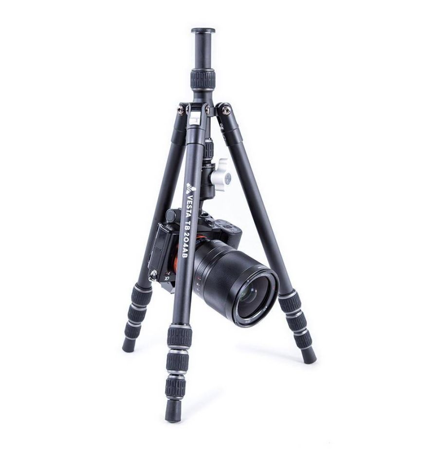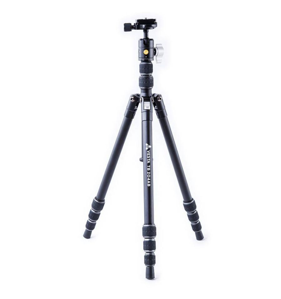 Vesta TB 204AB es un trípode de viaje de aluminio, ideal para fotografia macro incluye el adaptador para ángulo bajo. Patas ajustables de 4 secciones con bloqueo por giro.