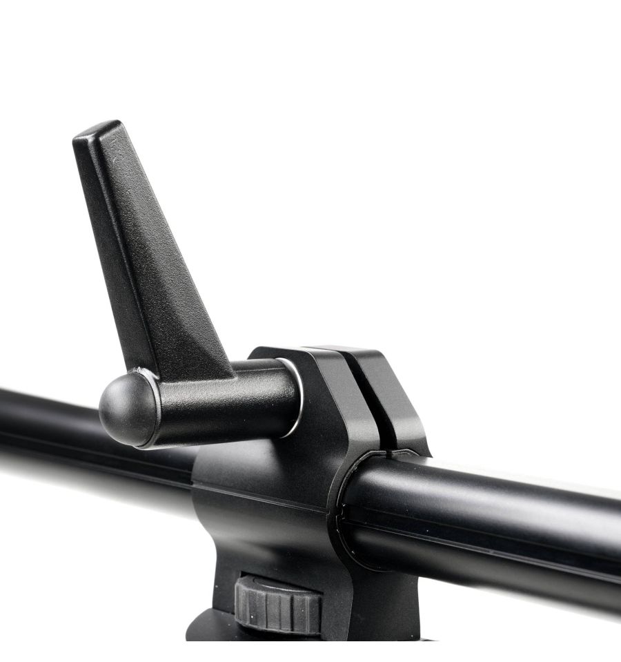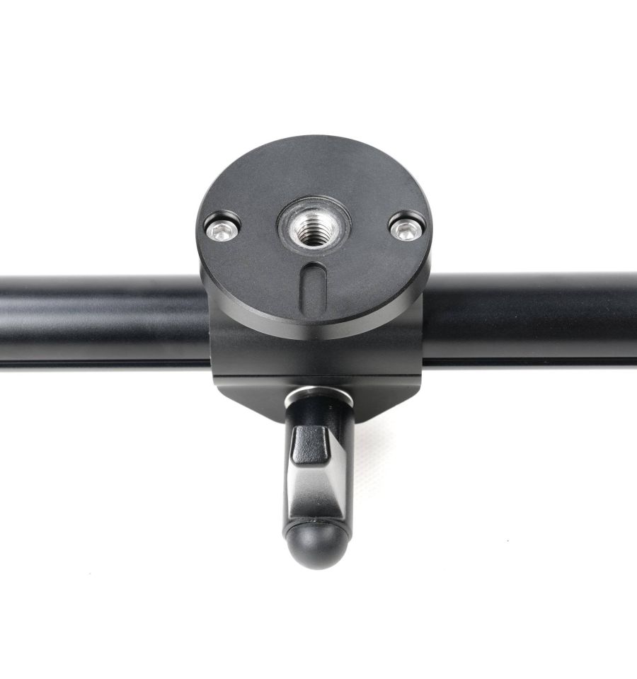 Este brazo se acopla a su trípode de forma rápida y sencilla. Cada extremo del brazo tiene una rosca reversible de 3/8" para convertirla en 1/4", lo que facilita la fijación de una rótula. Este kit incluye 2 soportes VEO MA-1 con pestañas de fijación que se deslizan y se bloquean firmemente.