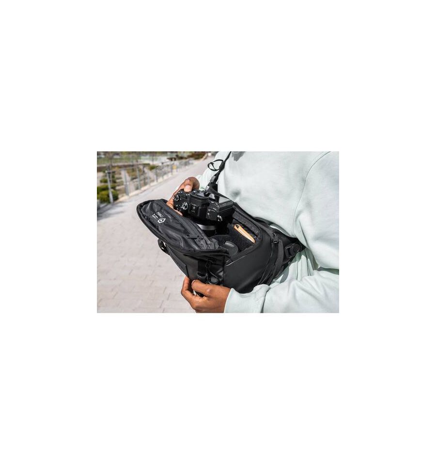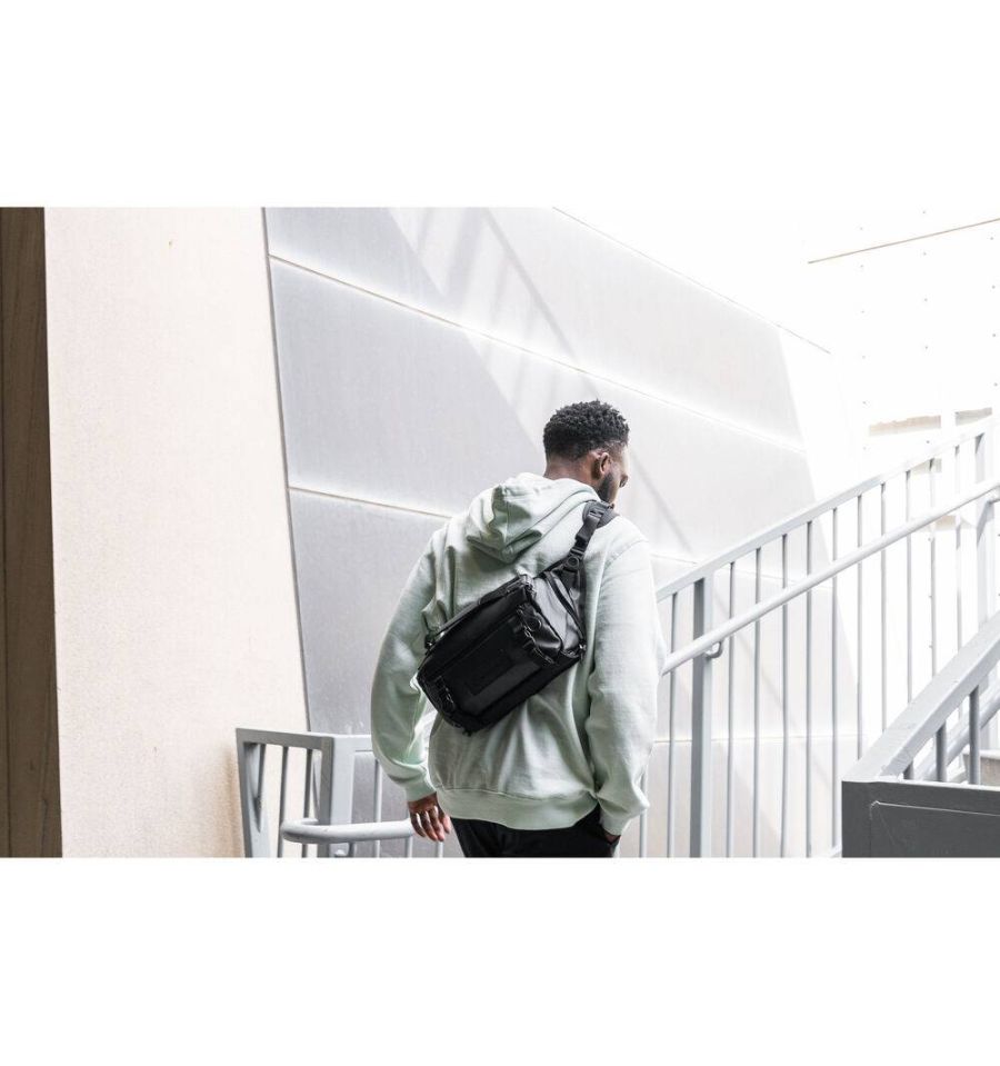 El 6L ROAM Sling en negro de WANDRD es un innovador sling para llevar su cámara o usarlo como bolso de todos los días.