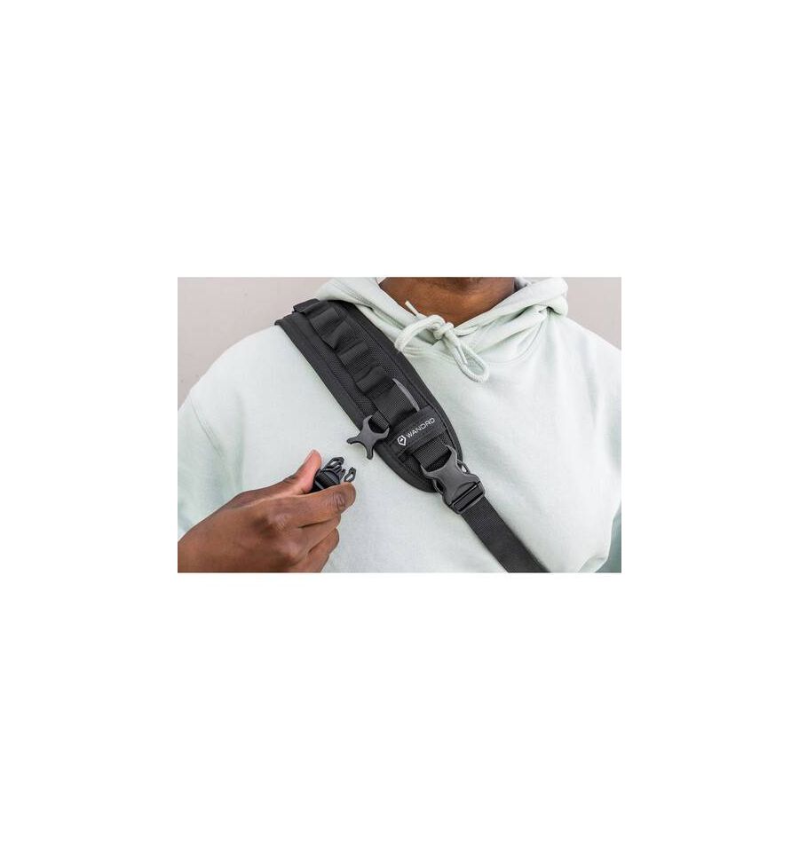 - Correa de hombro ajustable y extraíble.