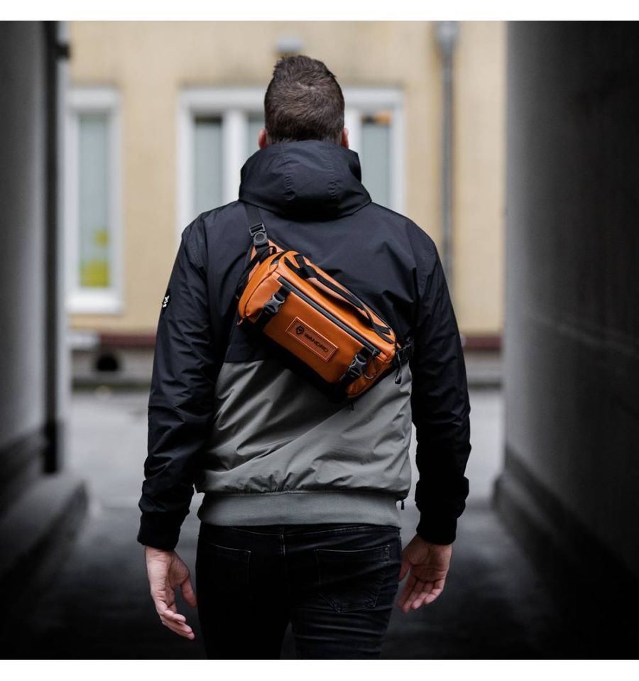 El 6L ROGUE Sling Sedona Naranja de WANDRD es un innovador sling para llevar su cámara o usarlo como bolso de todos los días.