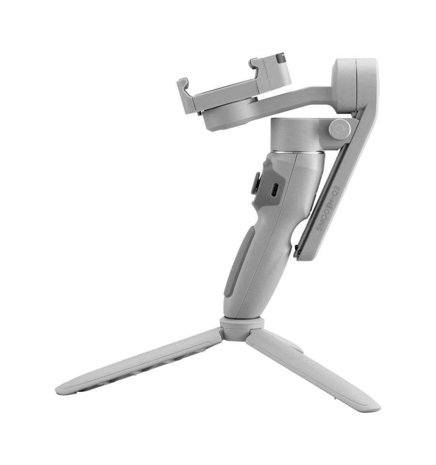 - Incluido con el Smooth Q3: mini trípode, cable USB-C para la carga, un mes de suscripción gratis a ZY Prime, guía de uso.