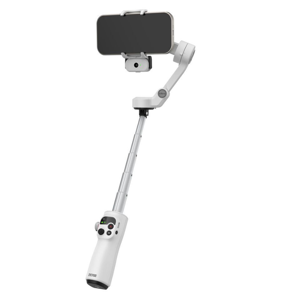 El estabilizador para smartphone SMOOTH-Q5 Ultra de Zhiyun ha sido actualizado para ofrecer mayor durabilidad, movimientos más suaves, cambio rápido de modos y control remoto. Conserva las potentes funciones de su predecesor, como la varilla de extensión integrada, el cambio rápido de modos y el control por gestos, y añade control por voz, compatibilidad con un mando remoto desmontable opcional y un módulo opcional de seguimiento por IA para mantener a los sujetos enfocados y dentro del encuadre.